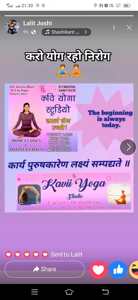 Kavii Yoga Studio aims to create a supportive and peaceful environment where individuals can explore the benefits of yoga, improve their physical fitness, enhance mental well-being, and cultivate a sense of inner harmony. With its convenient location and established history, it offers a reliable option for those seeking to incorporate yoga and meditation into their lives in Haldwani.