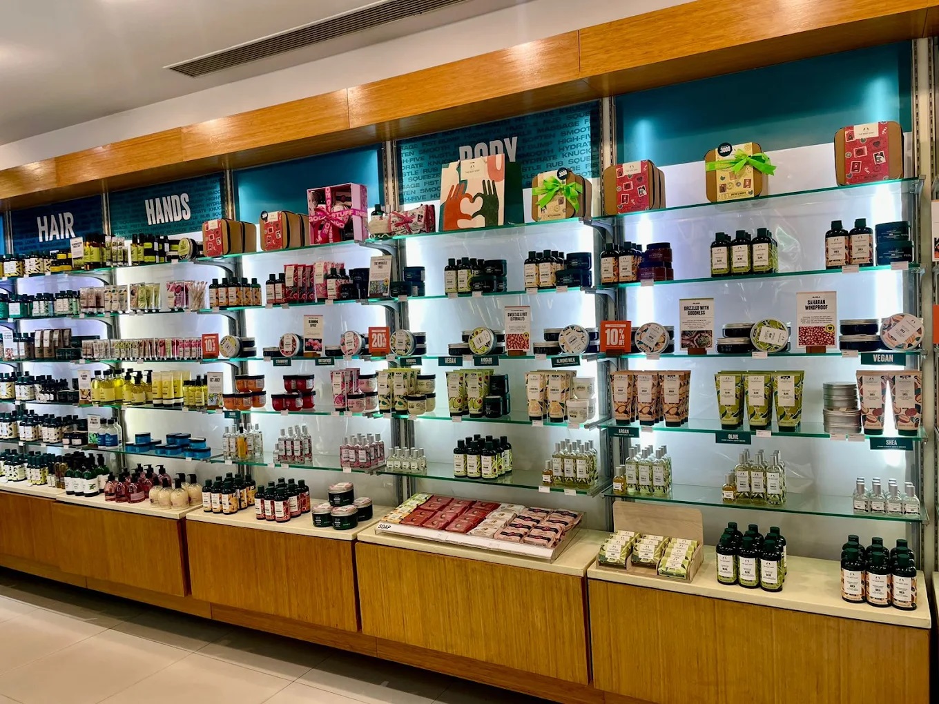 The store's inventory is characterized by its diversity, offering a mix of products that go beyond just cosmetics: