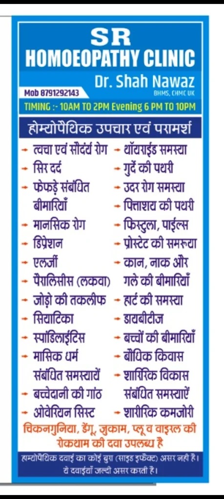 S.R. Homoeopathy Clinic is a well-established and trusted center for homeopathic treatment in Haldwani. Known for its holistic and patient-centered approach, the clinic is run by Dr. Brahmanand Murai and Dr. Sonali Baranwal. They aim to provide effective, long-lasting relief from various acute and chronic ailments.