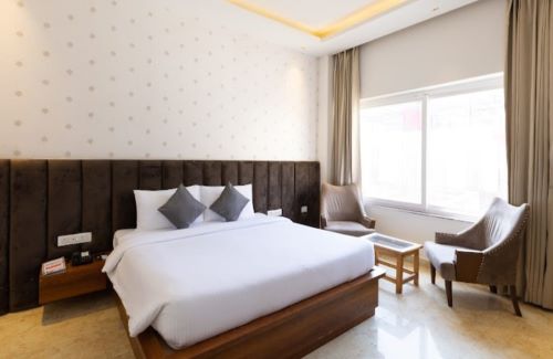 Each room is tastefully furnished with contemporary décor, offering all essential amenities including high-speed Wi-Fi, air conditioning, flat-screen TVs, and private balconies with picturesque views of the surrounding hills. Guests can indulge in delicious vegetarian cuisine at the in-house restaurant, unwind at the rooftop lounge, or enjoy rejuvenating yoga sessions and spa therapies.